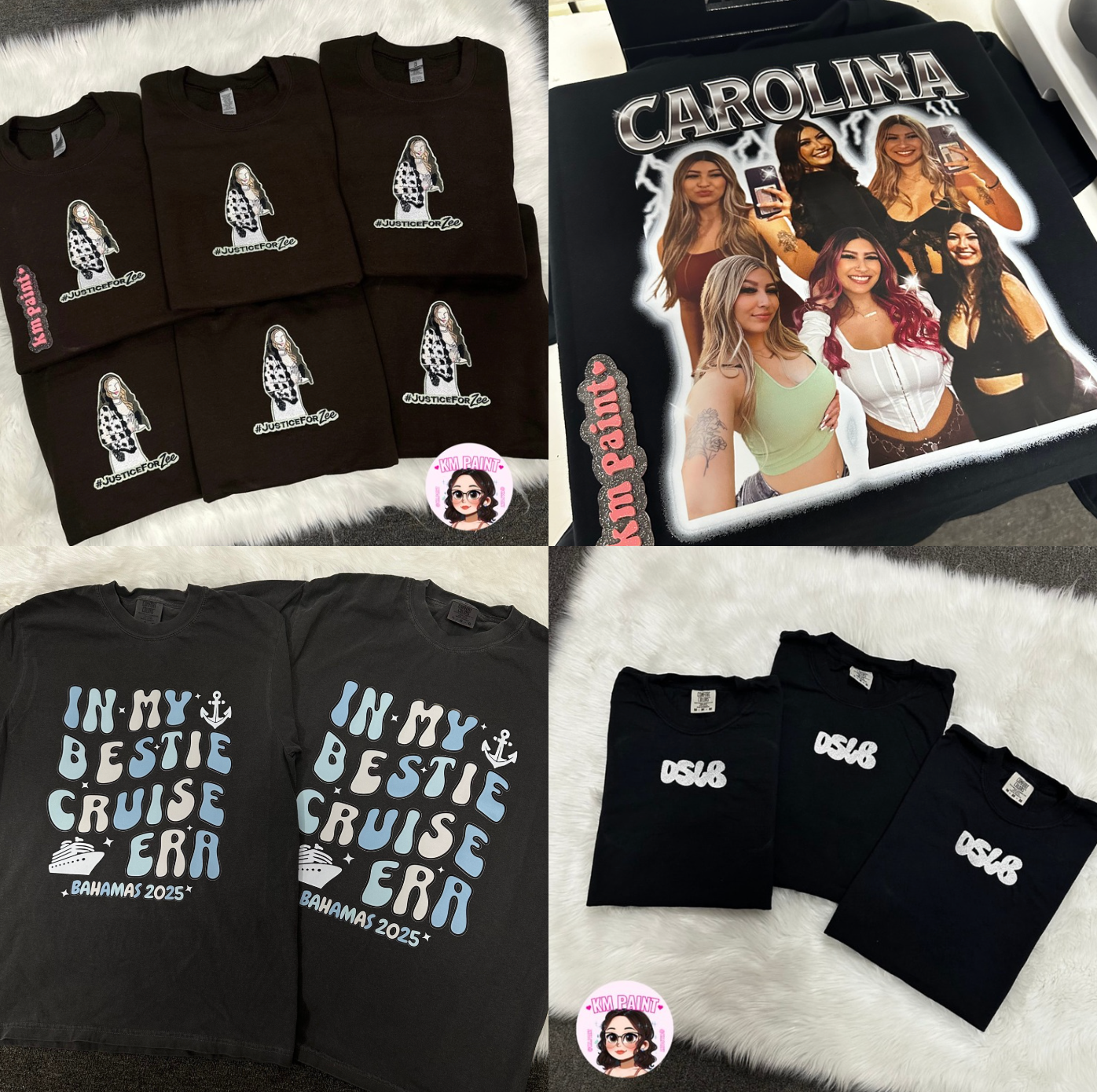I would love to help you create your custom shirts! Wether thats for a birthday party, vacation, wedding or for business! We do it all! ₊˚⊹ ᰔ
