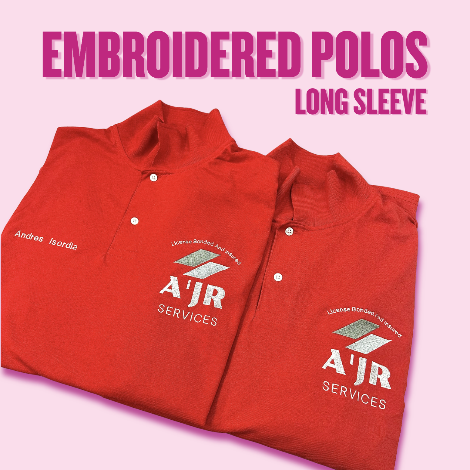 Let your shirt do the advertising for you! Our Long Sleeve Performance Polos are done on a