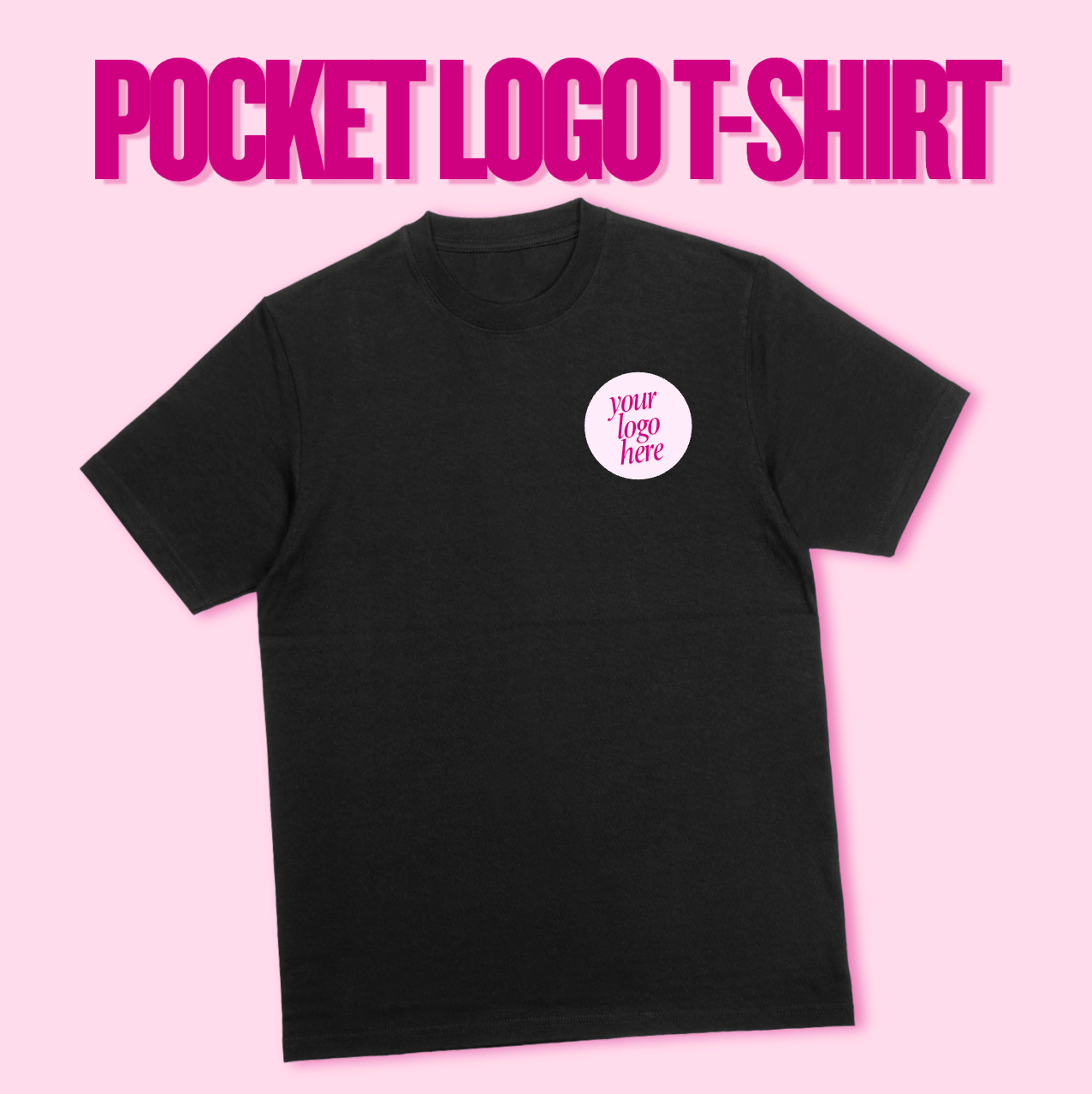 Upload your logo and get it printed onto a T-Shirt! Logo will be placed on the left side chest area in "pocket size." View photos for more examples :)